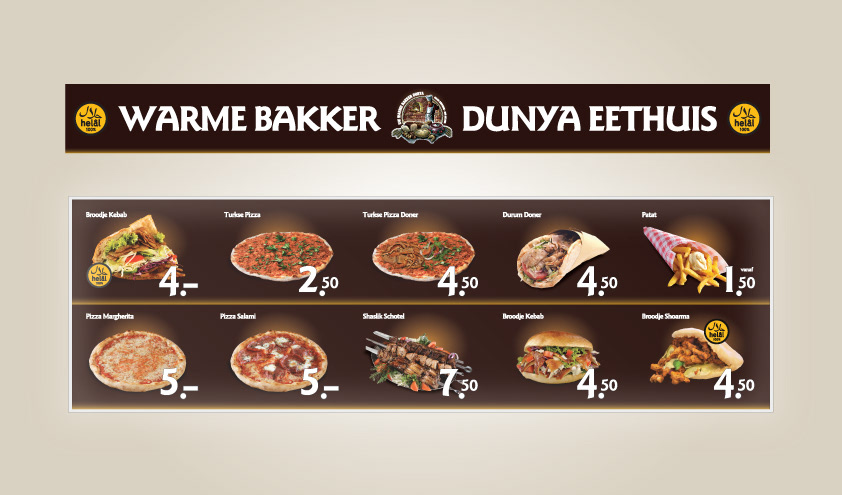 Ontwerp huisstijl (met bestaand logo), toonbanklichtbak bord.